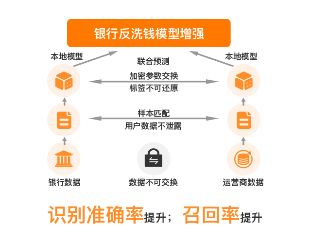 跨机构交易行为、异常线上联系行为、线下活动行为等信息是提升反洗钱监测模型效果的重要补充,银行欠缺进行安全融合的手段。